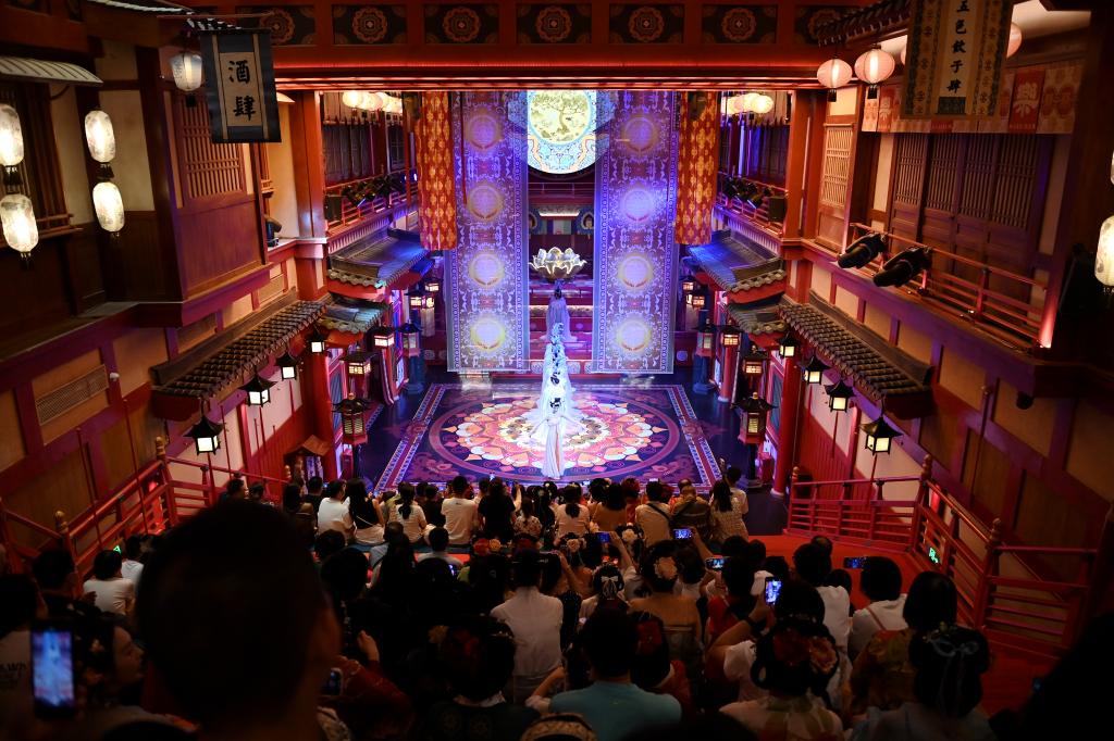 2024年5月12日,游客在西安長安十二時辰主題街區(qū)內觀看演出。新華社記者 李一博 攝
