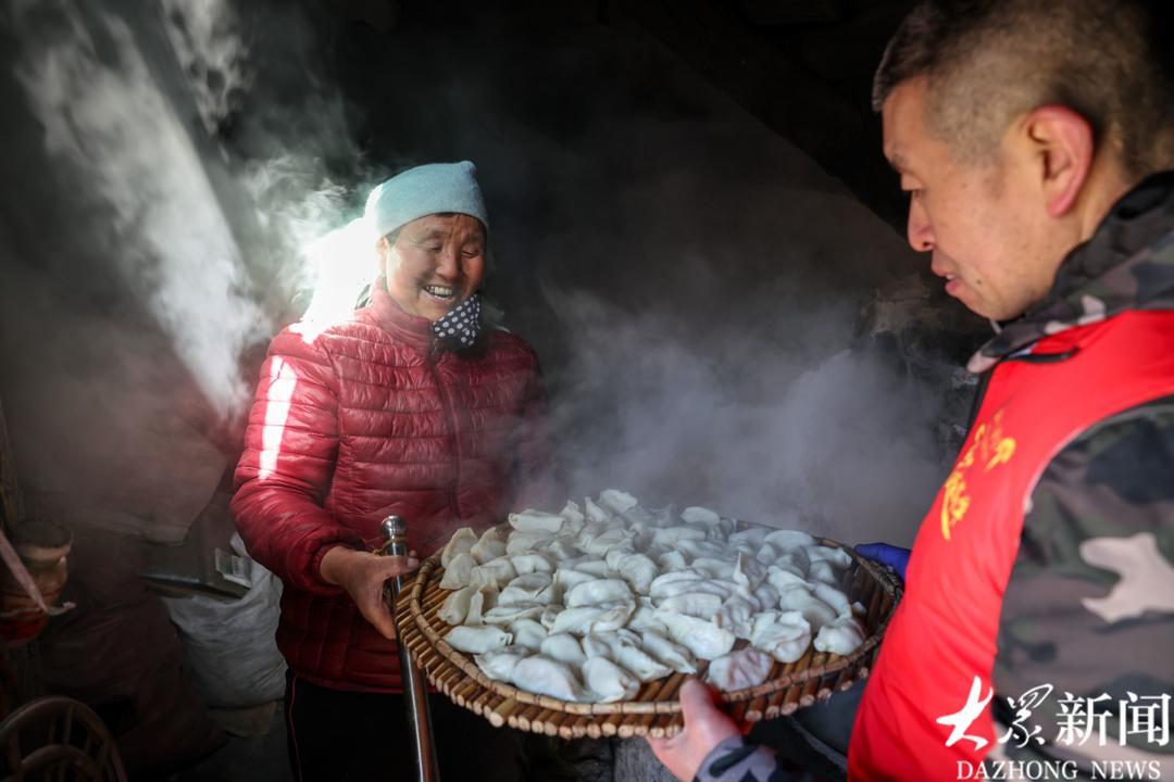 熱氣騰騰的水餃,是團圓最溫暖的符號。志愿者們與老人們圍坐在一起,揉面、搟皮、包餡。一盤盤水餃出鍋,大家圍坐一桌,吃著團圓飯,聊著家常話,有著家人般的溫情。在這個寒冷的冬日,楊集庵村不再冷清,老人們臉上洋溢著幸福的笑容,提前度過了一個熱鬧、快樂、祥和的小年。