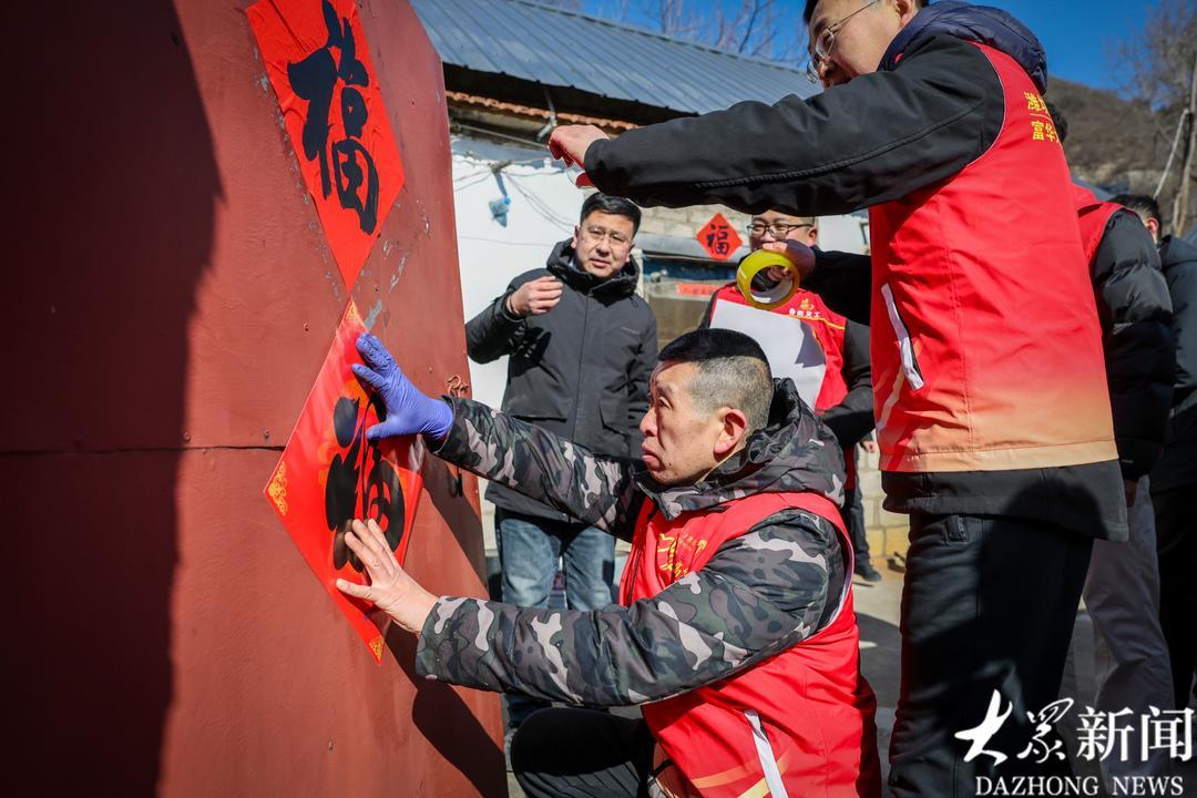志愿者來到村民家里,給貼上福字、春聯(lián)。