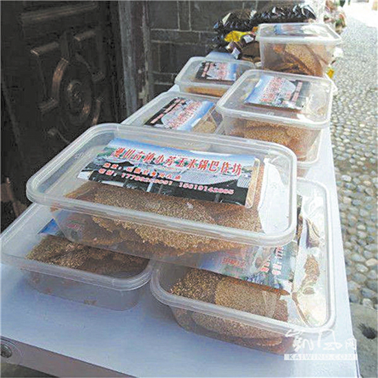 小芳鍋巴是美麗女子小芳研制的。她選用山里老式玉米粉,裝入盆兒里,摻少許芝麻,微微撒點(diǎn)鹽,加泉水?dāng)嚍楹隣?,薄薄地鋪在電餅鐺內(nèi)炕熟??粫r(shí)電餅鐺里不放油,有油雖不粘鍋,但易破碎,不完整,形態(tài)不雅??恢疗叱墒鞎r(shí),揭起來,切成各式各樣心儀美觀的形狀,放入油鍋里短暫的炸,小芳叫“過油”,目的使鍋巴金黃色亮,香脆味美。鍋里倒花椒油,炸出來的鍋巴是麻辣味兒。鍋內(nèi)放普通食用油,炸出來的鍋巴是清香味兒。吃小芳鍋巴,會(huì)勾起許多浪漫的往事,回想那首流行一時(shí)的民謠情歌《小芳》,讓你思念一個(gè)長得好看又漂亮的初戀,你會(huì)不由自主地買幾袋兒拿回家,送給那個(gè)一生都離不開的她。