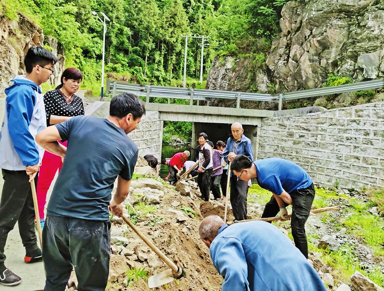 △5月27日,陜西省人社廳駐丹鳳縣武關(guān)鎮(zhèn)陽陰村扶貧干部發(fā)動(dòng)群眾50多人,根據(jù)當(dāng)?shù)赜欣貏?shì)開展引水工程,該工程的實(shí)施可解決全村45戶200多口人畜季節(jié)性干旱飲用水以及部分糧田抗旱問題。(鄭志財(cái) 攝)
