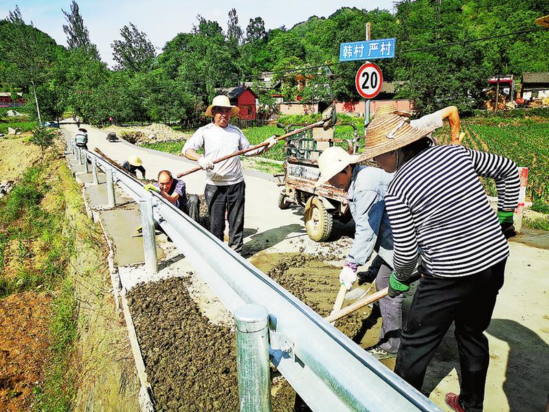 ?5月25日,在商州區(qū)板橋鎮(zhèn)韓村通村水泥路施工現(xiàn)場(chǎng),工人們正在進(jìn)行路面拓寬。據(jù)了解,本次將拓寬1.4公里的水泥路面,進(jìn)一步保障村民出行安全。(記者王孝竹攝)