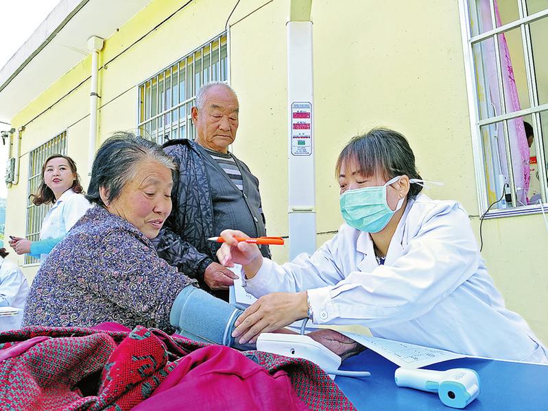 5月26日,洛南縣巡檢鎮(zhèn)衛(wèi)生院組織醫(yī)護(hù)人員深入黑彰村,為村里65歲以上老年人、所有貧困戶家庭成員、20歲至64歲婦女以及所有慢病患者進(jìn)行免費(fèi)體檢,開展健康扶貧,助力脫貧攻堅(jiān)。 (記者 王倩攝)
