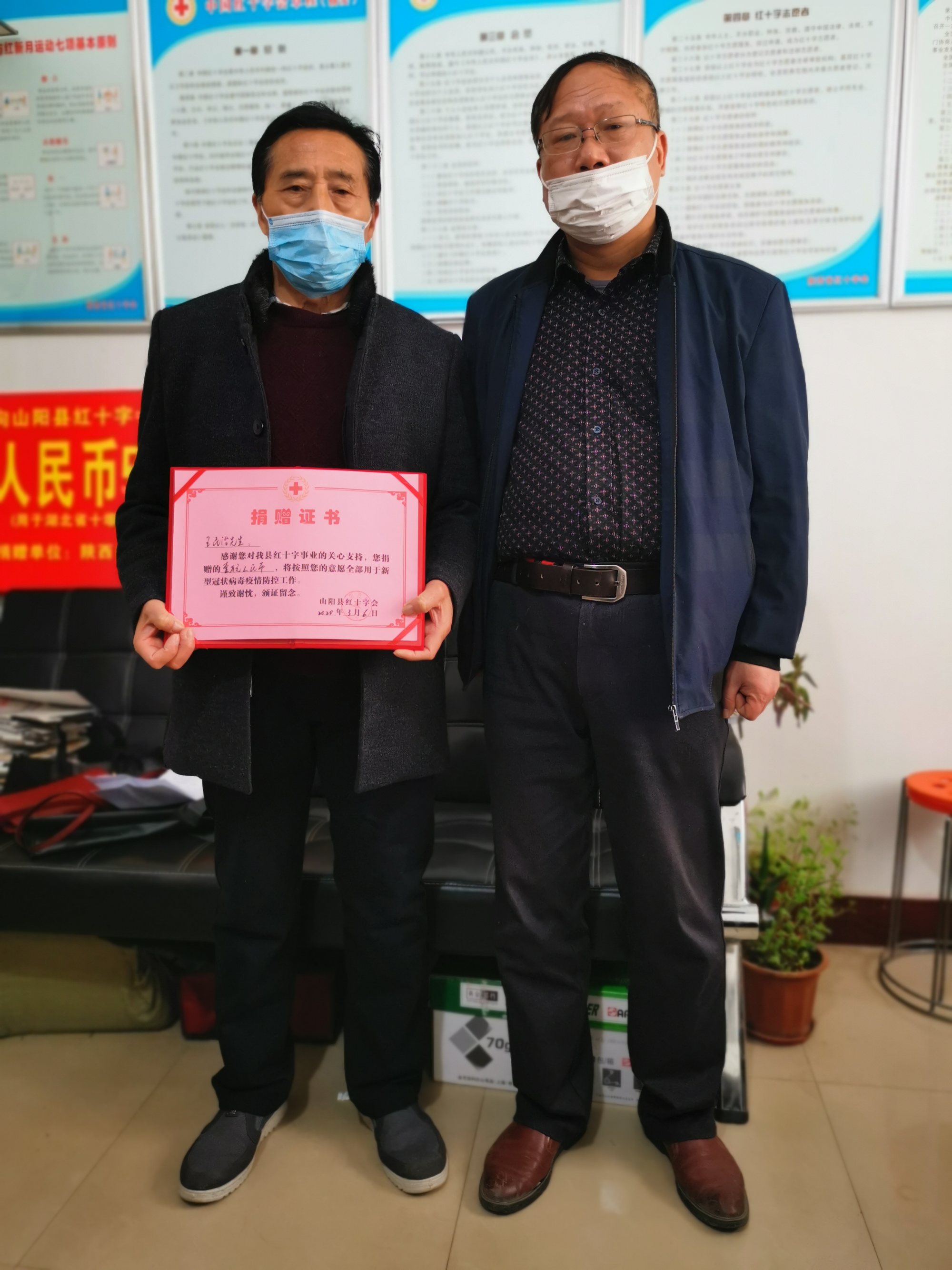 在看到汶川大地震、舟曲泥石流、玉樹(shù)地震的報(bào)道后,他都以最快的速度,向打工所在地的紅十字會(huì)、慈善組織多次捐款。2020年3月初,全國(guó)吹響抗擊新冠肺炎疫情號(hào)角后,他又果斷將兒孫們孝敬他的1萬(wàn)元全部捐給山陽(yáng)縣人民醫(yī)院。