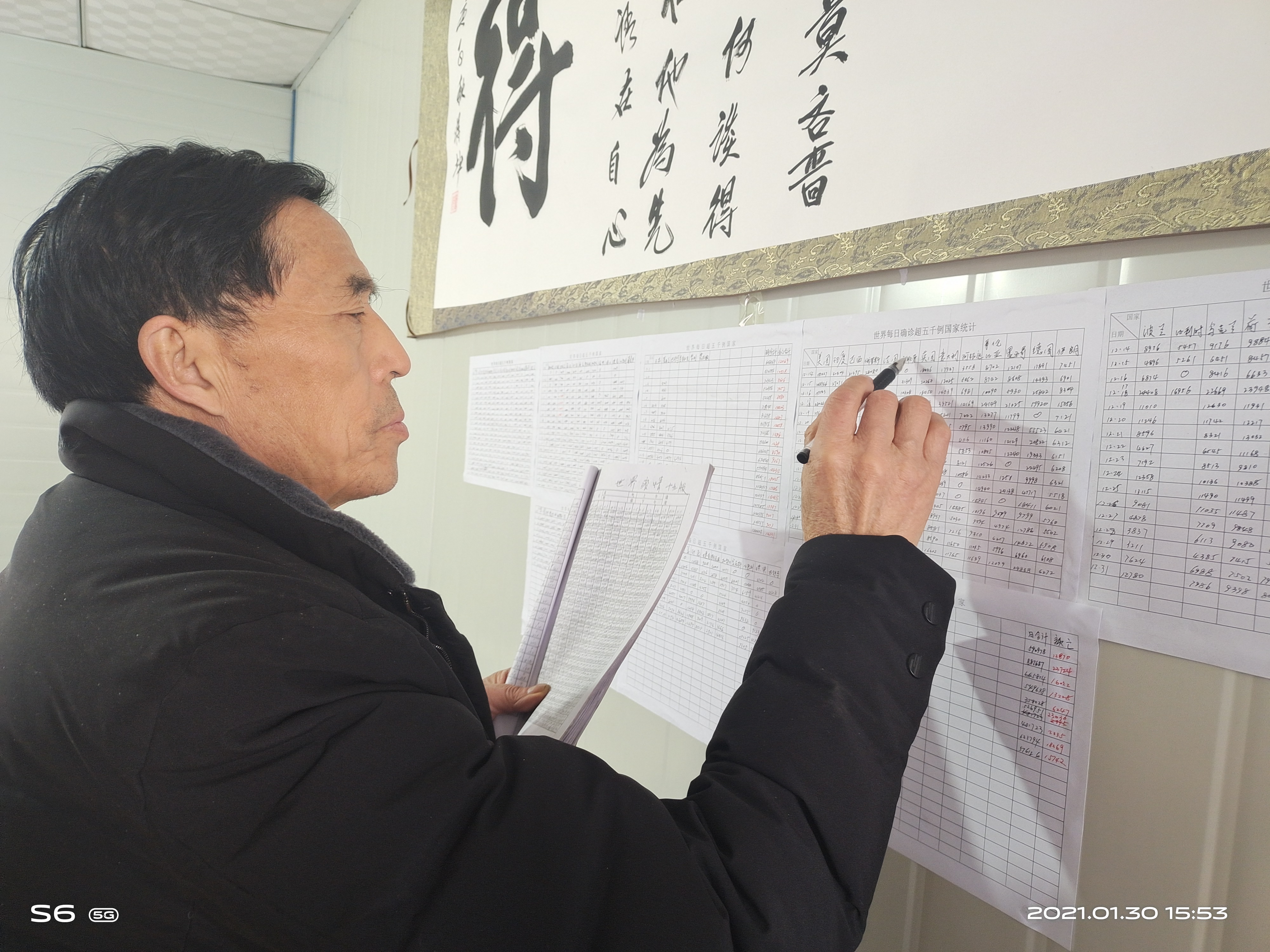 2月21日一大早,我們來(lái)到山陽(yáng)縣城王民治打工的工地上采訪時(shí),見(jiàn)他住在工地臨時(shí)修建的簡(jiǎn)易房里,房間里除了簡(jiǎn)陋的休息用床和他用于記錄疫情的桌子外再?zèng)]別物。雖然室外已不太冷,可室內(nèi)依然寒氣襲人。