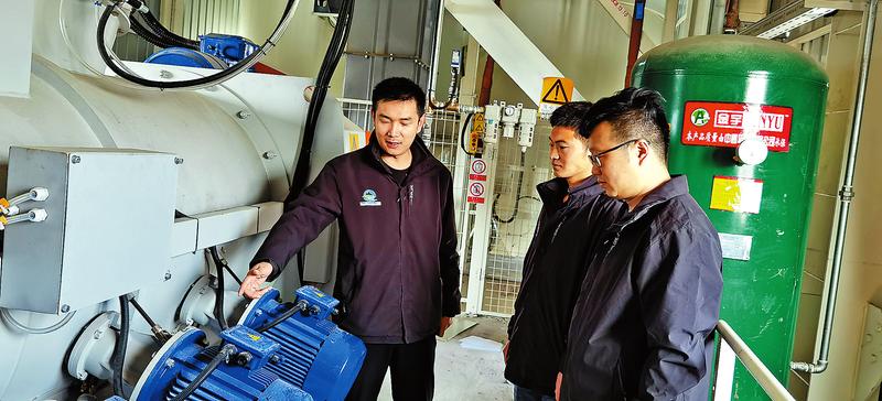 蘧小虎(左一)在企業(yè)指導生產(chǎn)