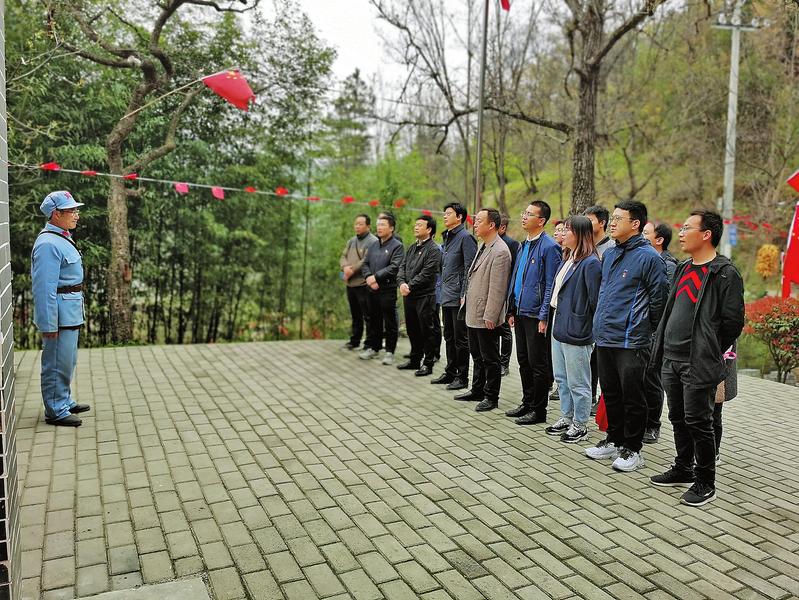 4月10日,洛南縣政府辦公室黨支部組織全體黨員干部來到商州區(qū)北寬坪紅色教育基地,深入開展主題黨日活動,緬懷革命先烈,重溫入黨誓詞,傳承紅色基因,進(jìn)一步激發(fā)黨員干部干事創(chuàng)業(yè)熱情。(姚渤潮攝)