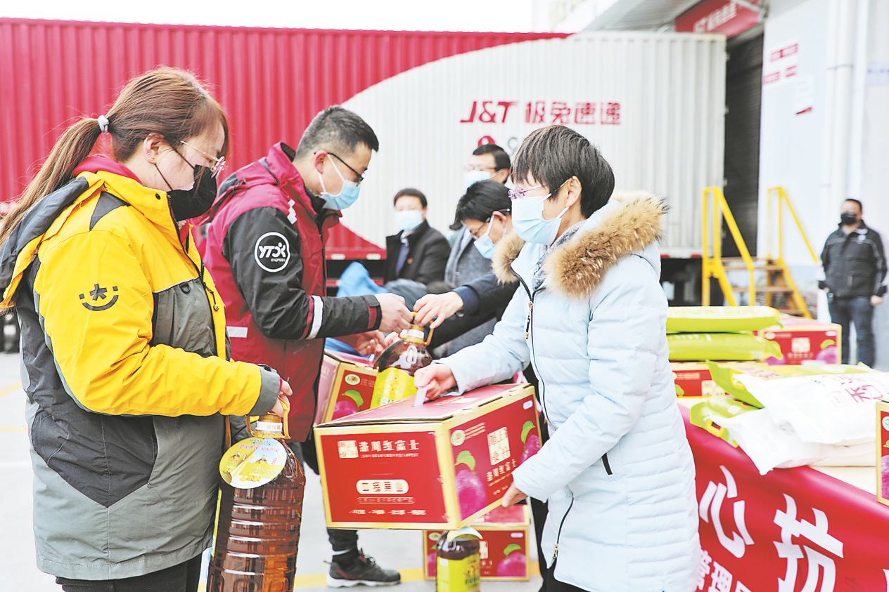 本報(bào)訊 (記者 李 亮)1月14日,商洛君威物流中心院內(nèi)暖意融融,市總工會(huì)為快遞小哥送來了價(jià)值2萬元的抗疫物資,感謝他們疫情下的堅(jiān)守和辛苦付出。