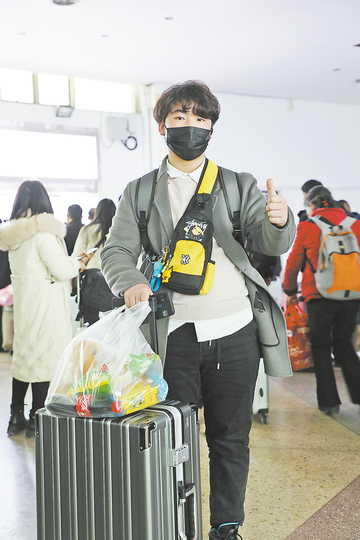 還未過正月十五,車站檢票口前排隊(duì)的隊(duì)伍里,大都是外出務(wù)工的人。連帽衛(wèi)衣、牛仔褲、運(yùn)動(dòng)鞋,一身休閑裝扮的謝詩濤站在隊(duì)伍里,就顯得很特別。頭戴耳機(jī),眼睛盯著手機(jī)屏幕,手機(jī)里正播放著熱播劇《人世間》。