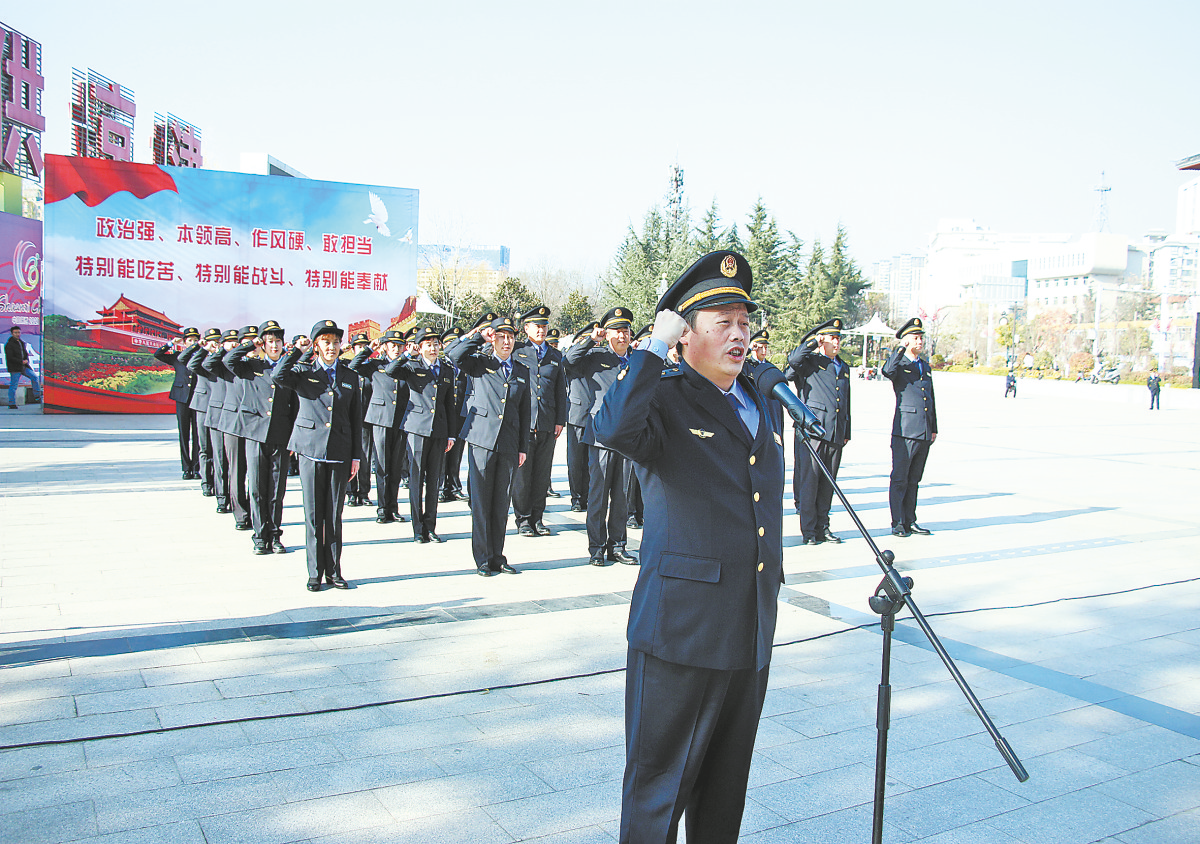 2021年12月9日,我市在商州區(qū)丹鶴樓廣場舉行全市生態(tài)環(huán)境保護綜合執(zhí)法隊伍制式服裝展示活動。