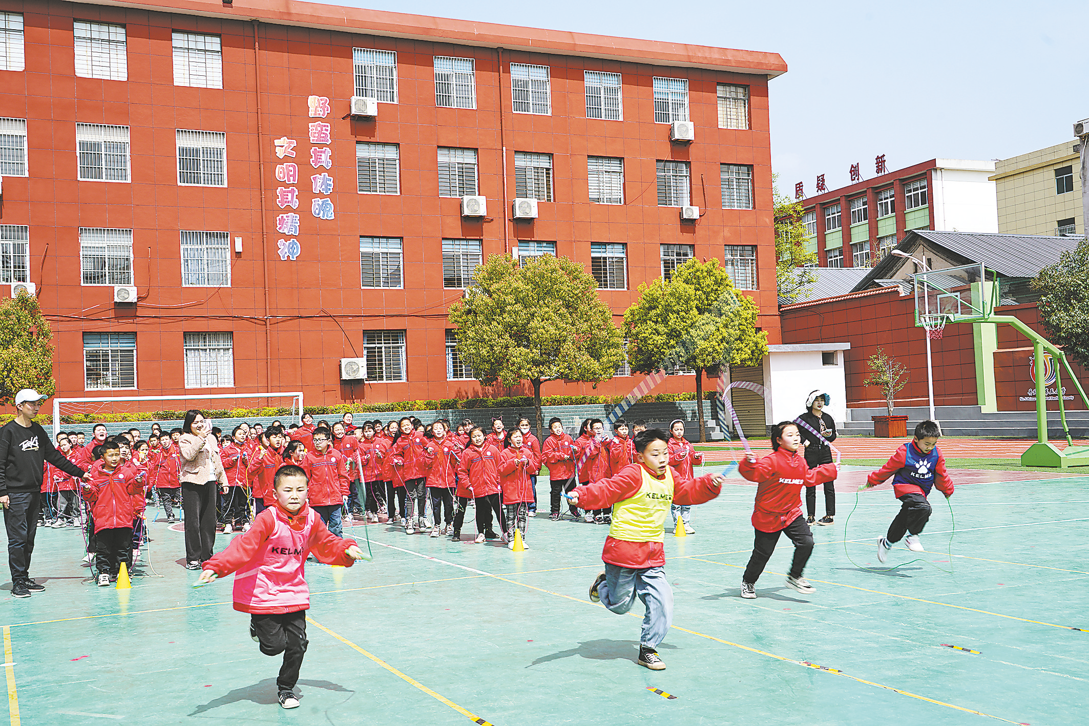 △4月1日至2日,丹鳳縣第五小學(xué)舉行以“運(yùn)動(dòng)+學(xué)科成長真快樂”為主題的趣味運(yùn)動(dòng)會(huì),采用“跳繩+算術(shù)”和“過障礙+記單詞”的比賽方式,將學(xué)習(xí)與運(yùn)動(dòng)相融合,不僅活躍了校園文化氛圍,加強(qiáng)了學(xué)科有效融合,也培養(yǎng)了學(xué)生的團(tuán)結(jié)協(xié)作精神和集體榮譽(yù)感。(本報(bào)記者 謝 非 攝)
