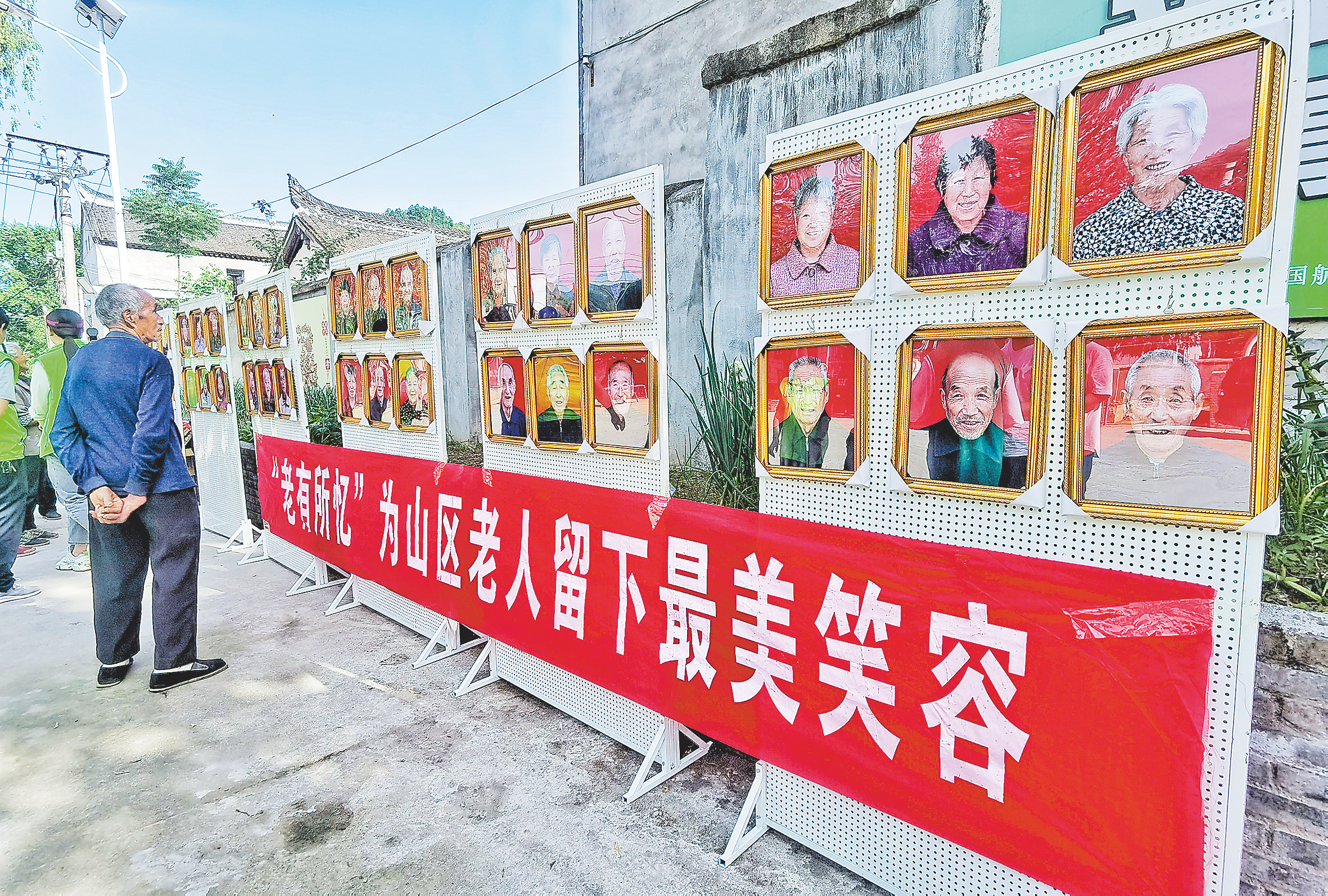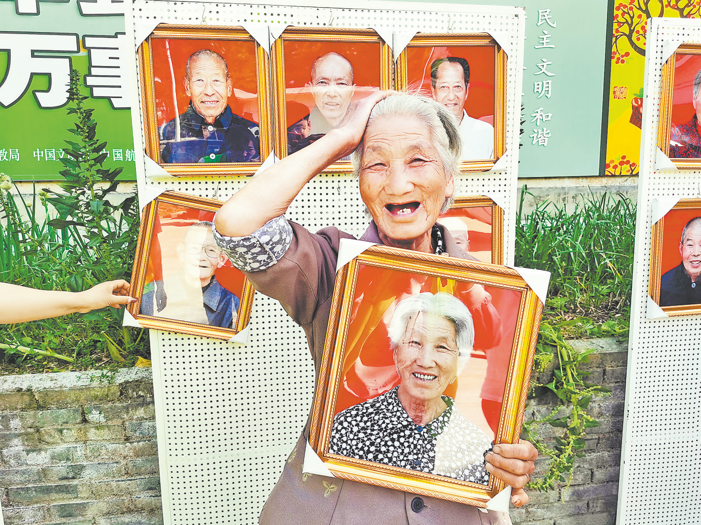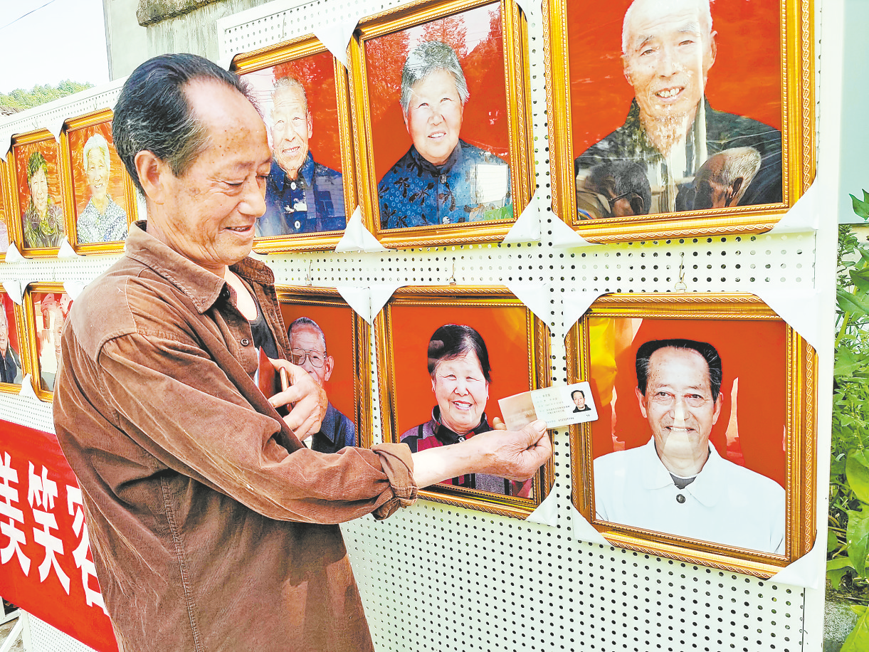 今年75歲的村民趙念堂拿著身份證和展架上自己的照片比了又比,激動(dòng)地豎起大拇指說:“真沒想到啊!這照片把我們這些老人都拍得好精神,尤其是我這張,比身份證上的好太多了,看起來年輕了好多,這個(gè)是我這么多年來最好的照片,真是好!”
