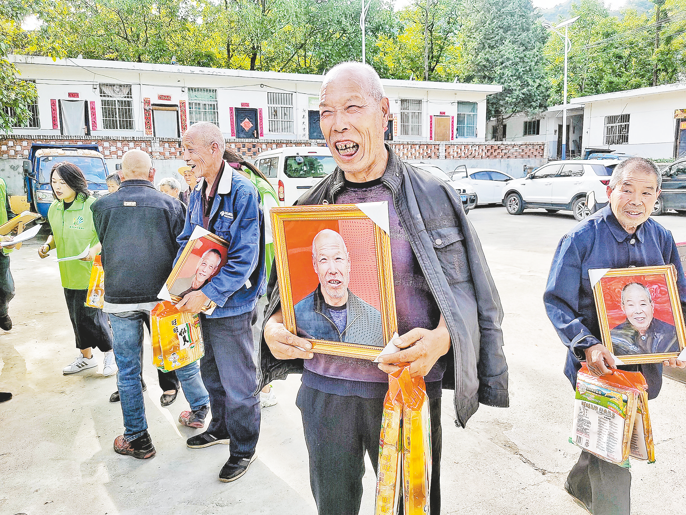 領(lǐng)到照片和愛心物資,老人無比高興。
