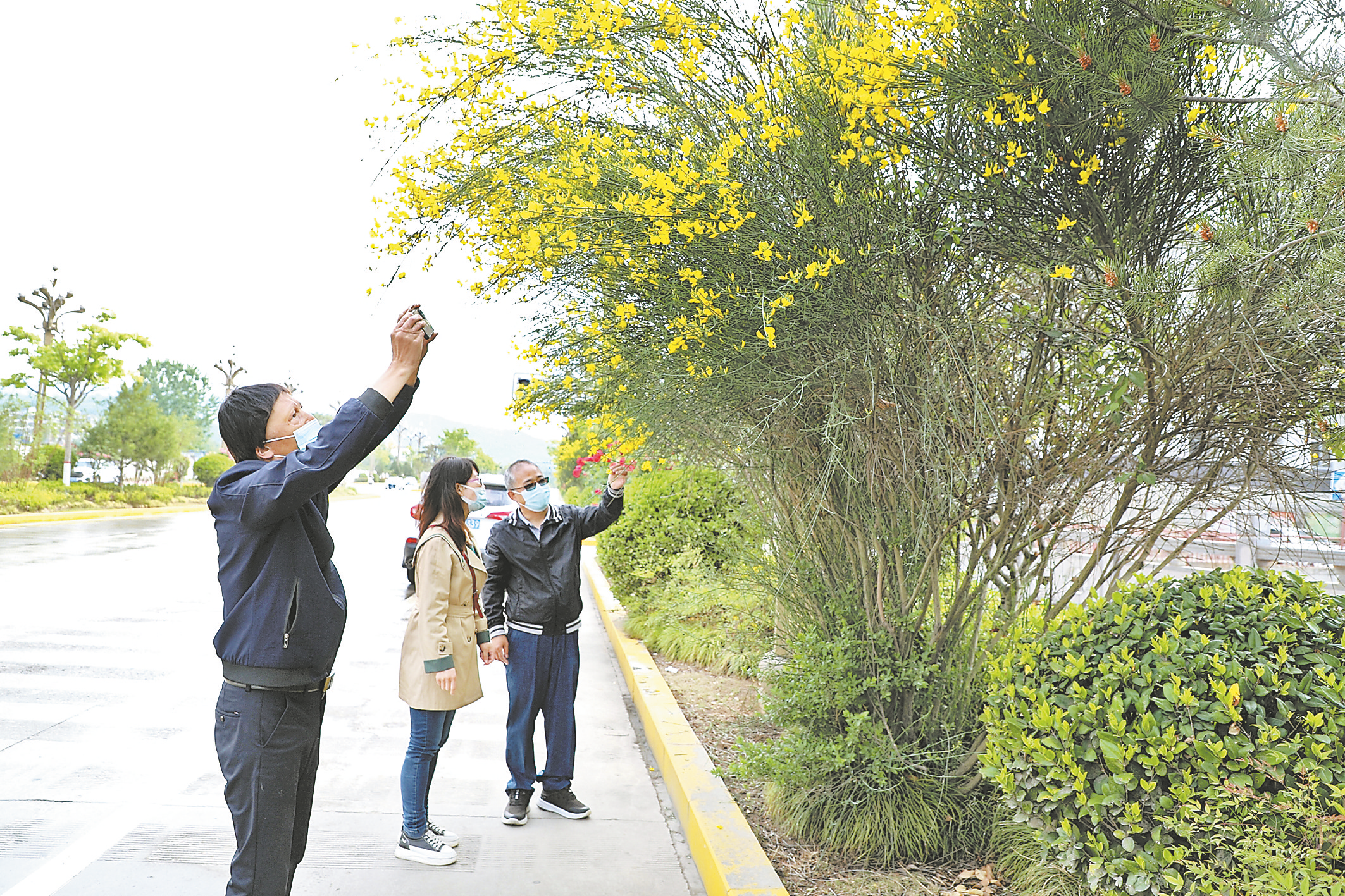 ①近年來,我市中心城區(qū)積極實(shí)施綠化美化工程,已形成“一街一景、季季有花、四季常青”的綠化新格局。圖為市民在中心街花帶前觀賞拍照。 (本報(bào)記者 王 倩 攝)