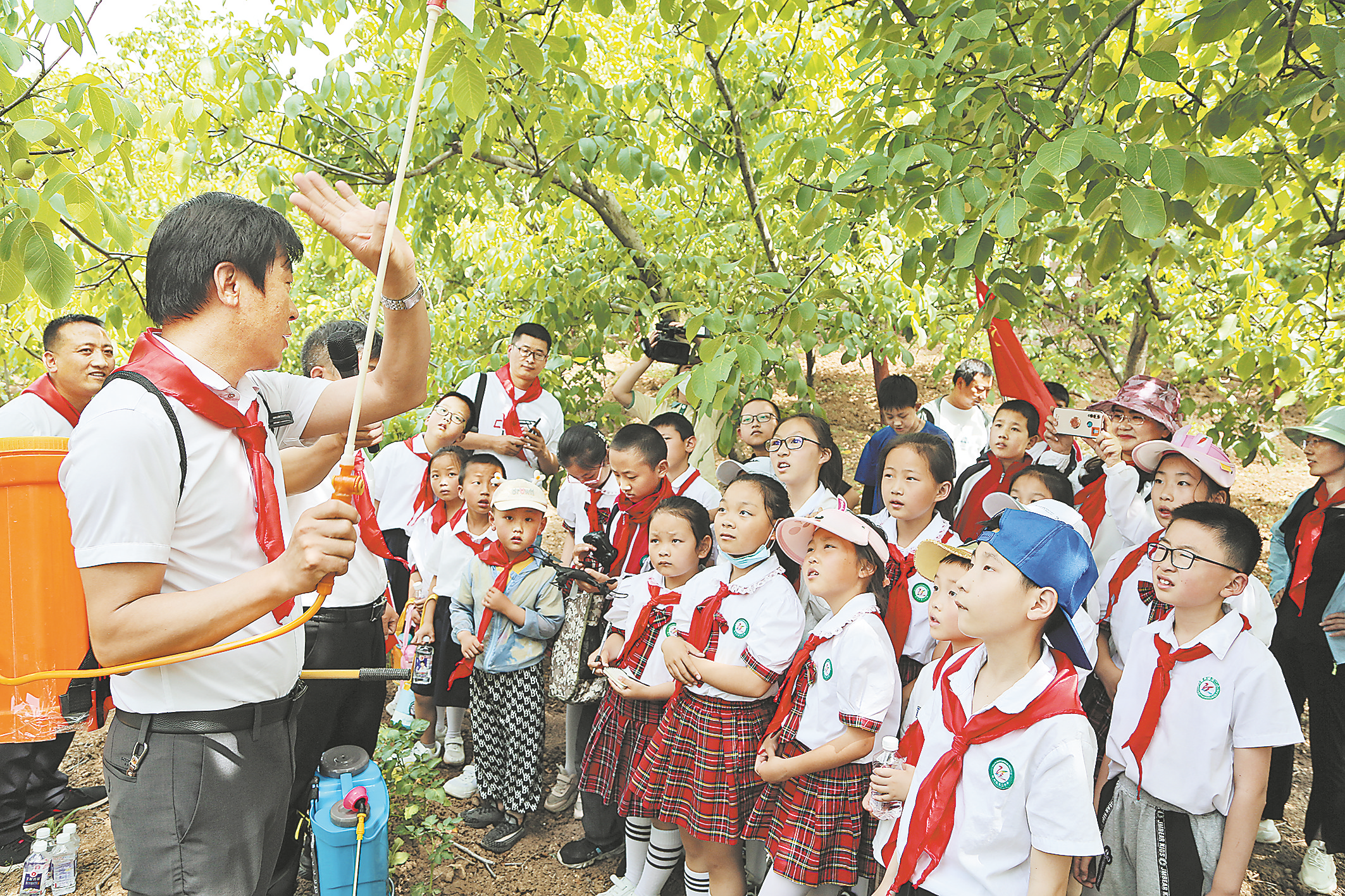 5月29日,市、區(qū)老科協(xié)和商州區(qū)第二小學(xué)聯(lián)合開展了2022年全國科技工作者日及“六一”少先隊員走進企業(yè)和田間地頭科普實踐活動?;顒右?ldquo;爭當(dāng)科學(xué)少年、爭創(chuàng)科普先鋒”為主題,少先隊員們在商洛牛伯伯生物科技有限公司的商洛核桃主題館,了解參觀了商洛核桃的歷史和各種核桃產(chǎn)品;在被譽為“商州核桃第一村”的上河村核桃園內(nèi),學(xué)習(xí)了核桃的經(jīng)濟價值、生長結(jié)果習(xí)性和科學(xué)管理等知識,還通過實踐了解了各種噴藥器具的使用方法;來自商洛天外天航空科技有限公司的技術(shù)人員講解了無人機噴藥防治核桃園病蟲害的相關(guān)技術(shù),并現(xiàn)場為同學(xué)們進行了無人機噴灑農(nóng)藥演示。