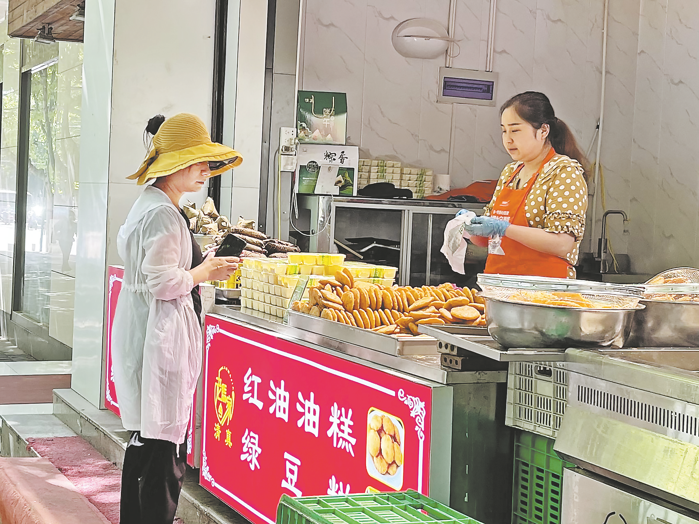 市民購買街邊綠豆糕、油糕。