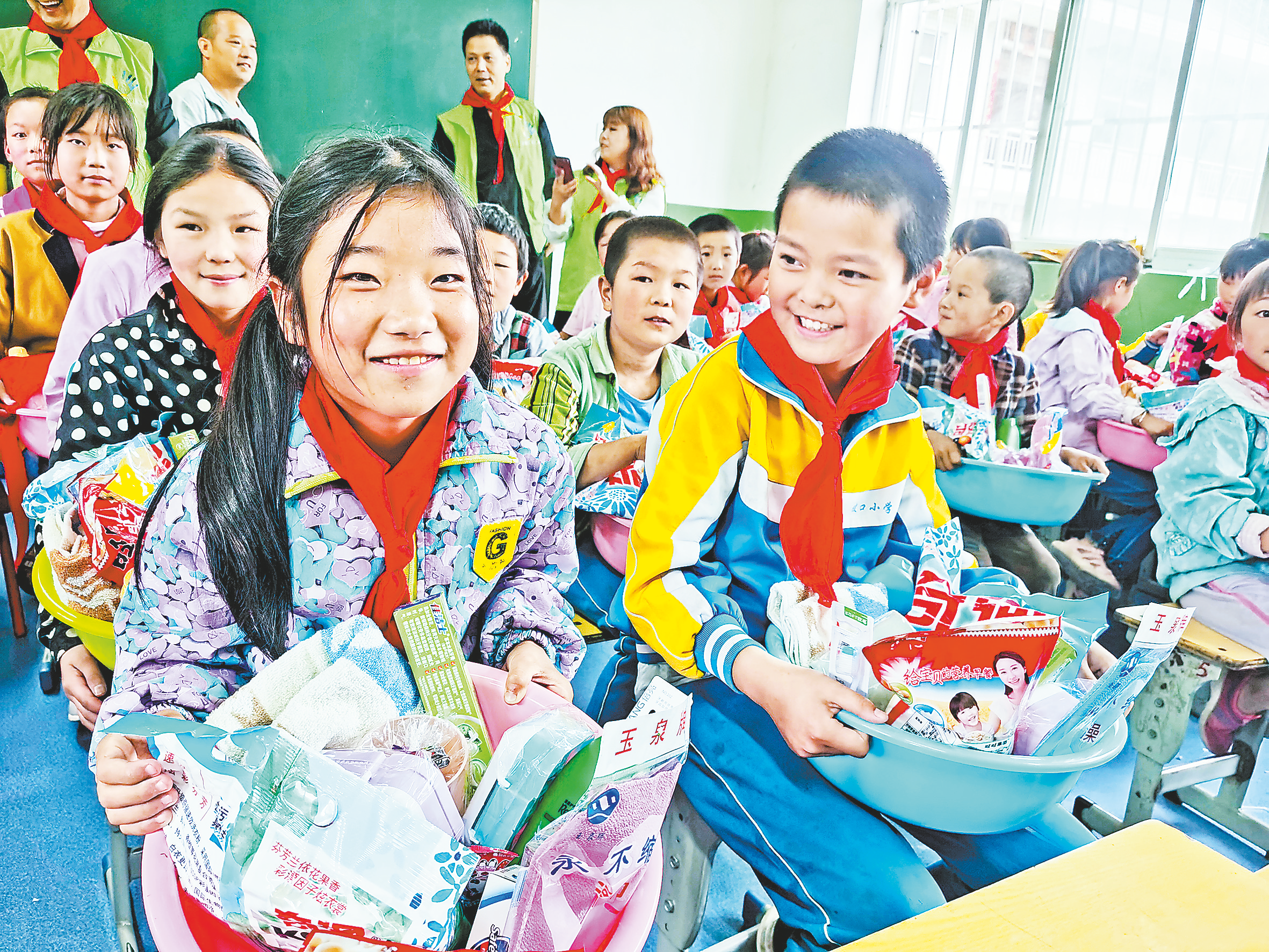 他們的活動(dòng)不僅僅是給孩子們送一些貼心的物品。他們還會(huì)帶上裝有洗發(fā)水、沐浴露、牙刷牙杯的“清潔包”送給孩子們,并為他們洗頭發(fā)、剪指甲,教他們刷牙,幫助他們養(yǎng)成講衛(wèi)生的好習(xí)慣。