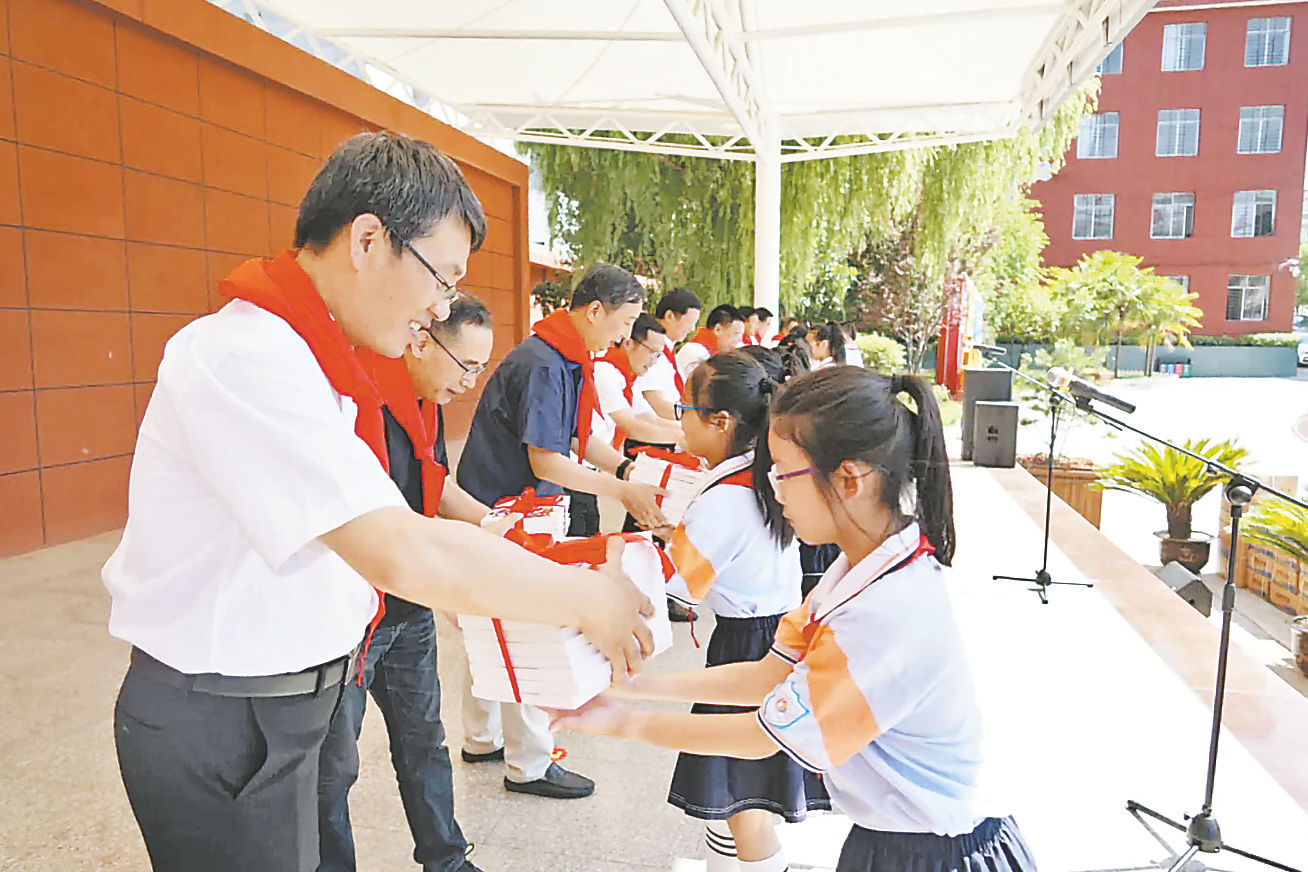 6月17日,省圖書館暨省級(jí)單位駐丹鳳幫扶團(tuán)組織的“同心共建 書香校園”贈(zèng)書儀式在丹鳳縣第五小學(xué)舉行。省圖書館向縣第五小學(xué)贈(zèng)送了價(jià)值10萬元的兒童文學(xué)、國學(xué)經(jīng)典以及科普知識(shí)類圖書2700冊,陜西華遠(yuǎn)醫(yī)藥集團(tuán)西安有限公司向?qū)W校贈(zèng)送了價(jià)值2萬元的口罩及消毒液。 (本報(bào)通訊員 高 鴻 攝)