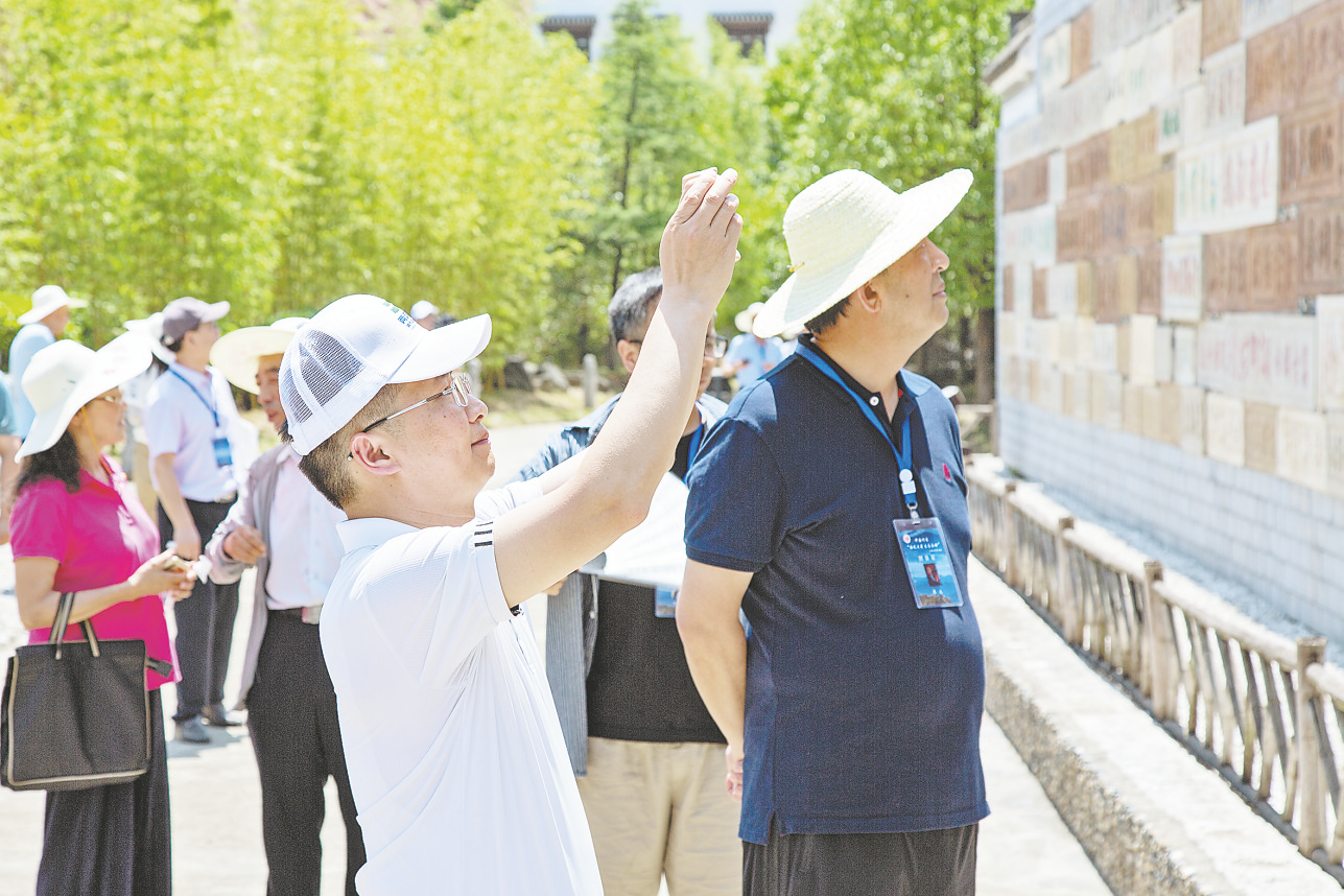 采風(fēng)團(tuán)在漫川人家文創(chuàng)基地欣賞雕磚文化墻