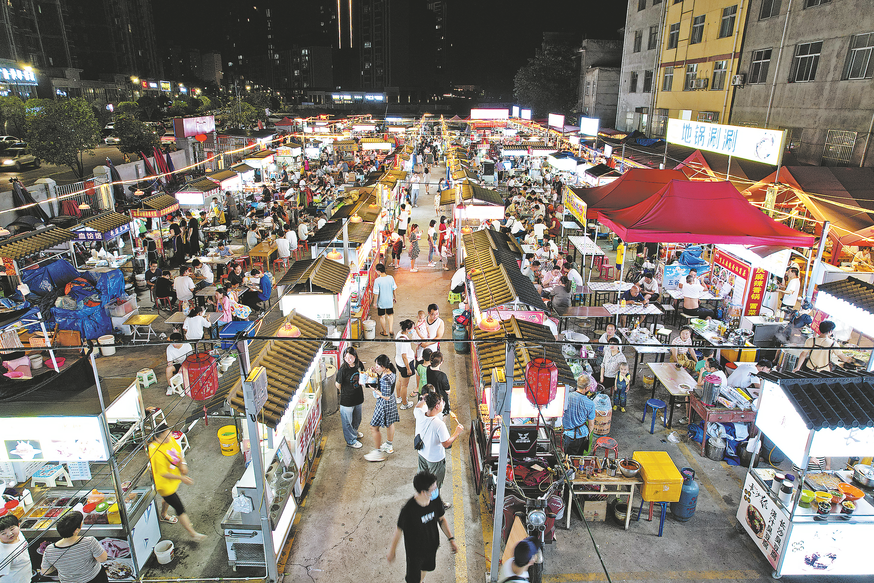 商洛城區(qū)的傍晚,夕陽余暉灑在丹江兩岸,涼爽的晚風將悶熱一掃而空,忙碌了一天的市民或結伴漫步江邊,或圍坐在夜市的小攤邊暢飲,伴著動感音樂盡情享受慢生活的愜意。夜幕降臨,商洛城區(qū)漸漸點亮街燈,各色美食讓城市的夜晚充滿了濃濃煙火氣。夏日里,我市在做好疫情防控的同時,不斷釋放“夜經濟”活力,豐富群眾生活。