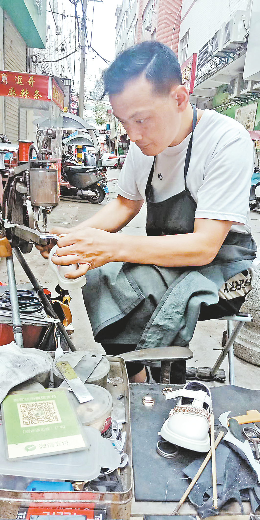 我看師傅神情專注,又摸不清其秉性,就沒敢和他閑聊,只是在掃碼付錢時(shí)笑著問了一句:“師傅手藝好,一天能修百十雙鞋吧?”哪知師傅一句鏗鏘回答,讓我大跌眼鏡:“那可不止了!”聽口氣,師傅一天的收入可不少呢。