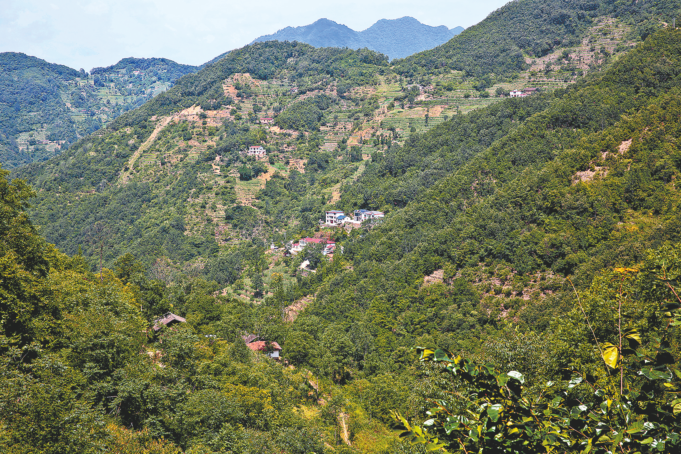 從青銅關(guān)鎮(zhèn)的東坪出發(fā),我們沿著盤山公路一路往上,來到一個叫小五臺的山頂,又一路向下到達溝底,這兒就是旬河村(原龍勝村)。然后,我們再沿著一條小溪盤山而上,小路越走越細,遠遠看見半山腰有一個紅色的屋頂,那就是謝吉安老人住的地方。