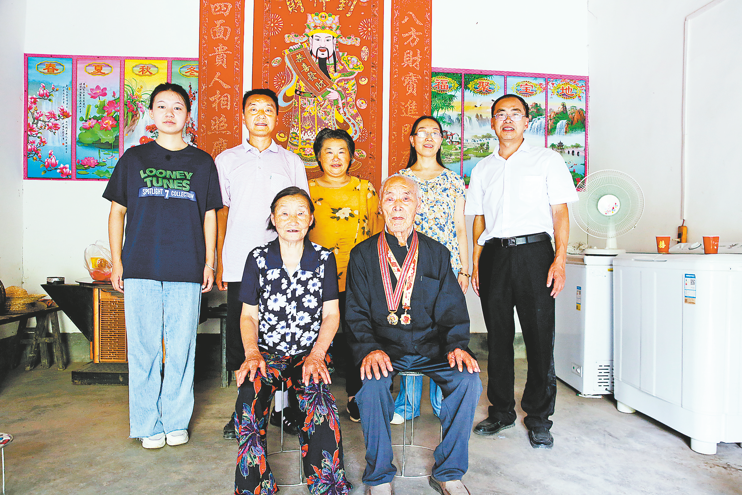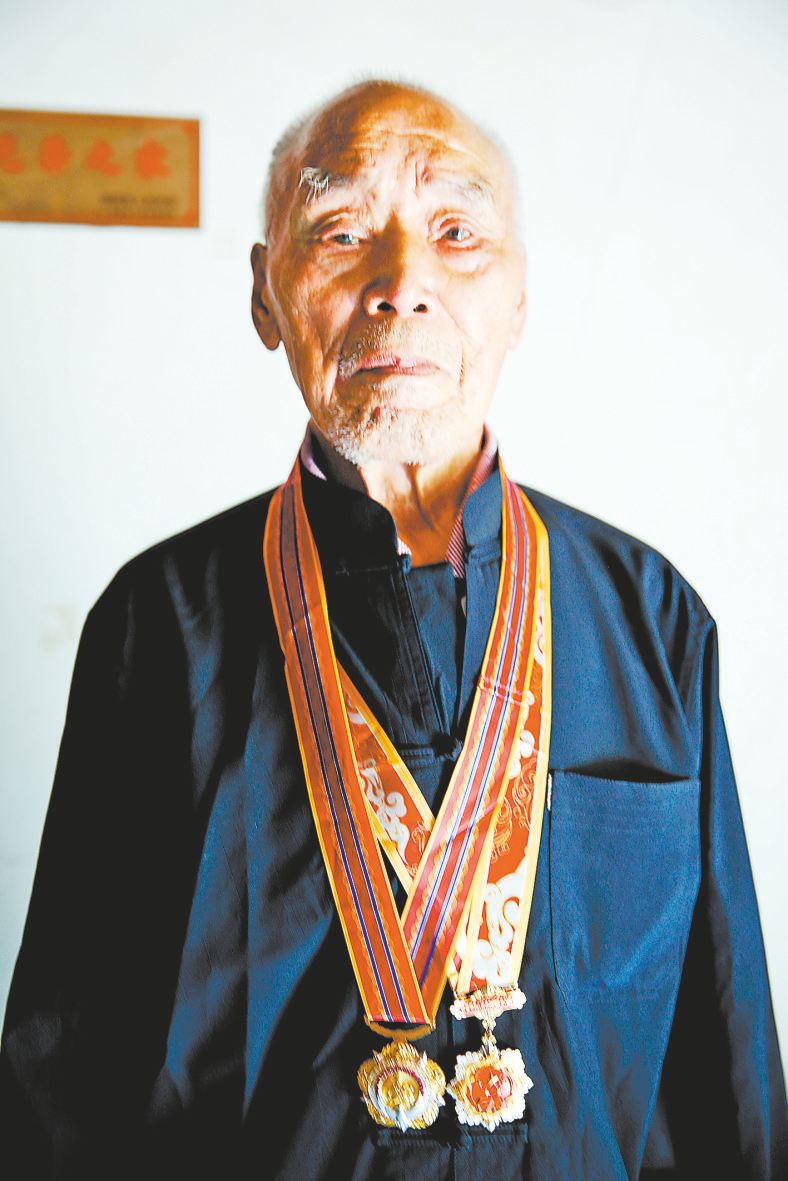謝吉安近照。胸前佩戴的兩枚紀念章,一枚是慶祝中華人民共和國成立70周年紀念章,一枚是中國人民志愿軍抗美援朝出國作戰(zhàn)70周年紀念章。