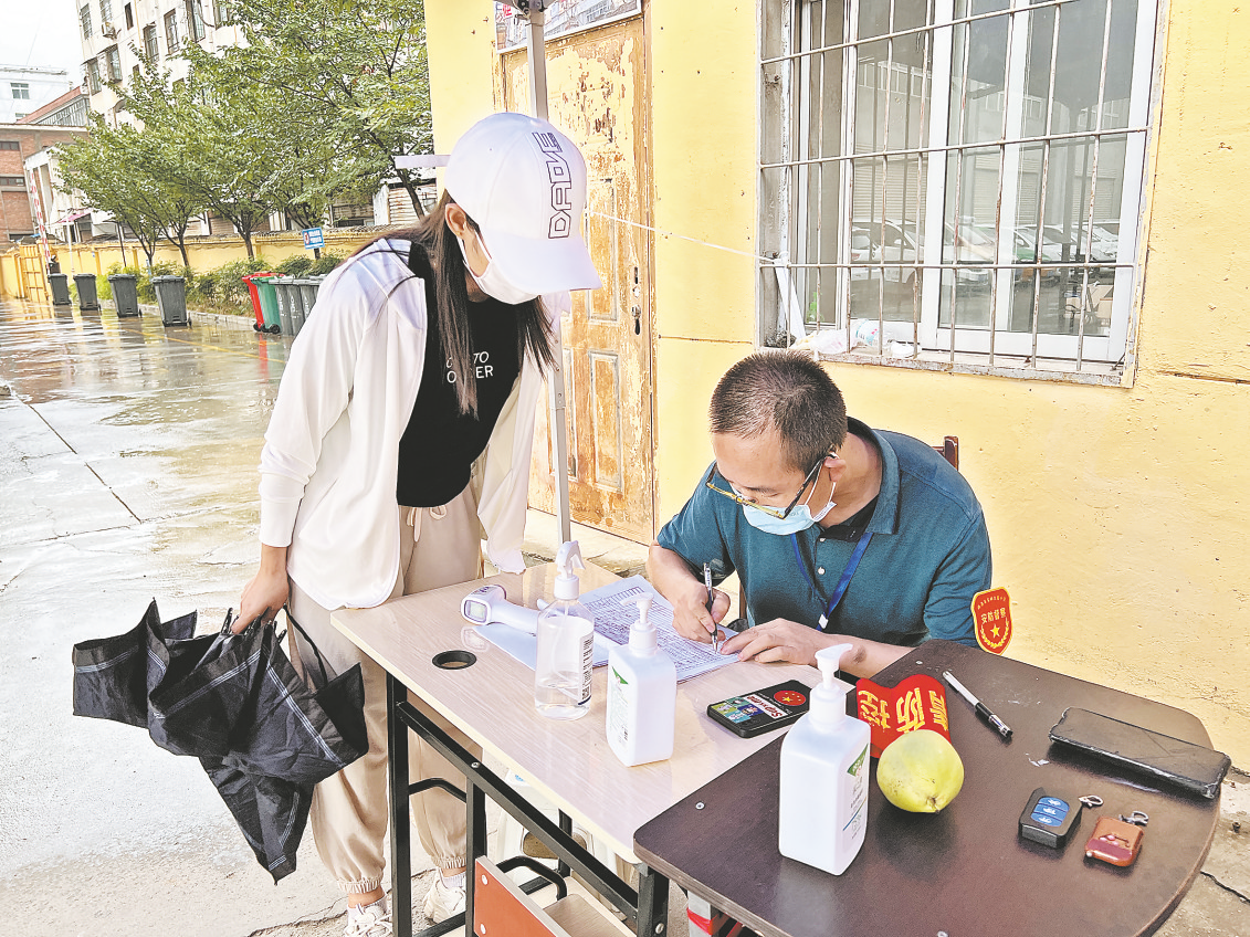 “你好,請出示健康碼、行程碼,核酸陰性信息……”8月24日,正在詢問小區(qū)出入人員信息的是小區(qū)業(yè)委會副主任程偉偉。疫情防控工作開展以來,他承擔(dān)起了小區(qū)內(nèi)公共場所消殺、小區(qū)出入口值守、防疫政策宣傳等各項工作,成了疫情防控宣傳員、摸排員、監(jiān)督員。