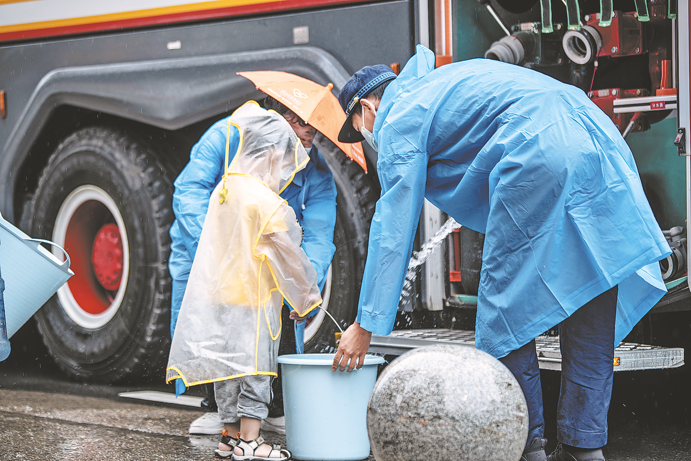 疫情期間,消防車充當(dāng)送水車。