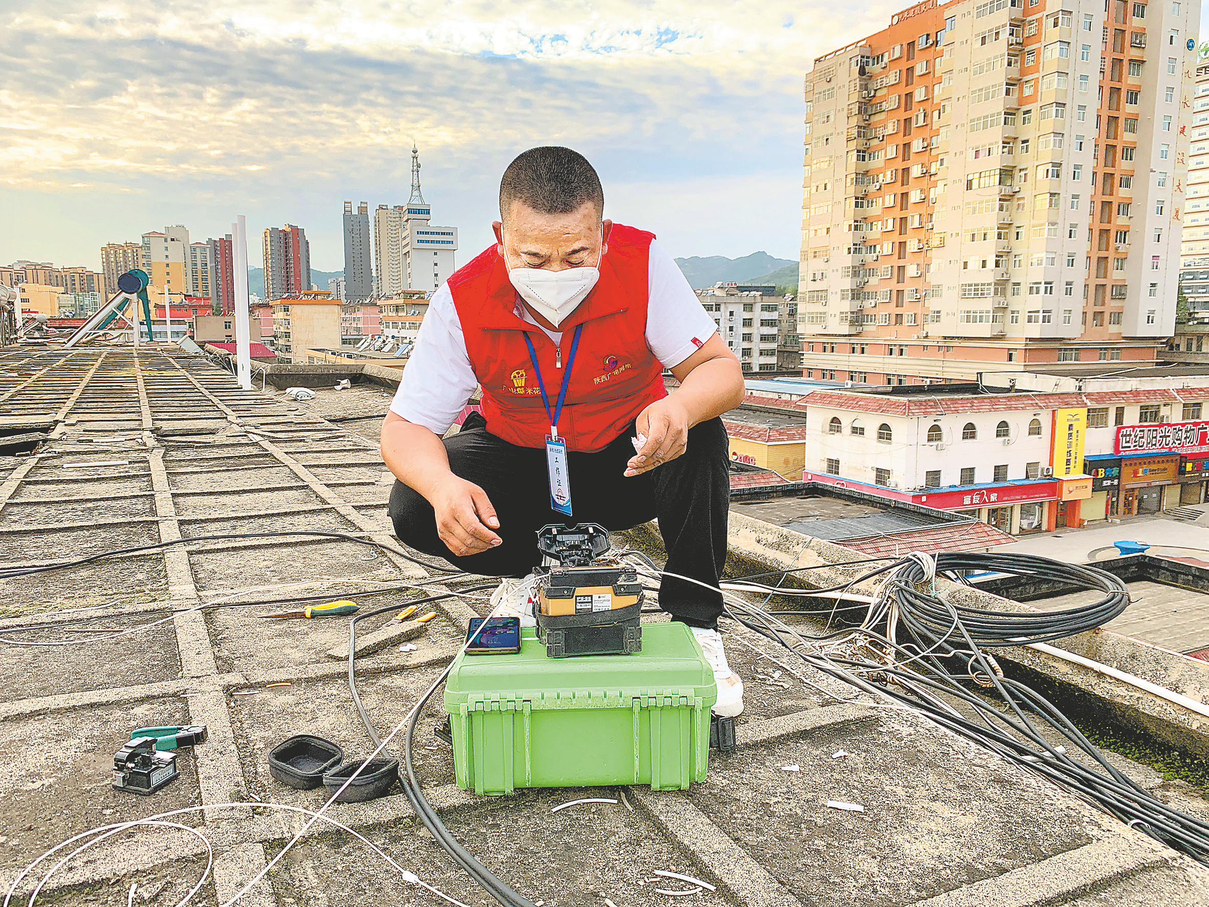 商洛廣電網(wǎng)絡(luò)公司工作人員正在維修故障