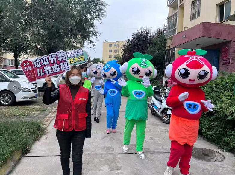 同時(shí),活動(dòng)中積極推廣應(yīng)用我市生活垃圾分類宣傳LOGO標(biāo)志和卡通形象。以商洛市生活垃圾分類卡通形象-環(huán)保小衛(wèi)士“美美、麗麗、藍(lán)藍(lán)、天天”為原型制作的四個(gè)可愛靈動(dòng)的卡通布偶吸引了眾多居民圍觀。一些小朋友積極、踴躍參與,手舉垃圾分類宣傳牌和志愿者們一同開展宣傳。