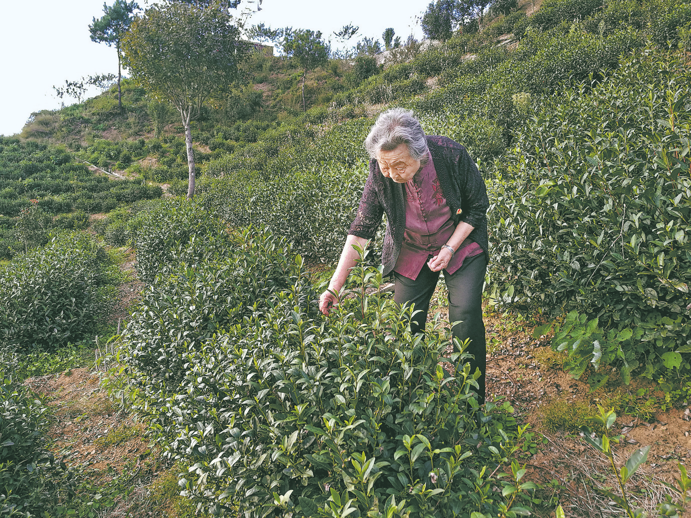 這位老人便是張淑珍,她采下一片嫩葉對同行者細(xì)心講解:“俗話說‘春茶苦,夏茶澀,要喝茶,秋白露。’白露茶有一種獨(dú)特的清香,很濃郁,還蘊(yùn)含著一種詩情在里面。”85歲的張淑珍,活成了一部關(guān)于茶的“百科全書”,巡視茶園成了她日常必做的功課。