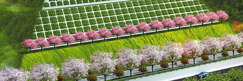 環(huán)城西路二期道路項目南起馬蓮峪立交,北與北新街相交,全長2100米。綠化工程包括行道樹和部分中分帶綠化、景觀綠道綠化以及邊坡綠化。道路主線綠化總面積8329㎡,邊坡綠化總面積約3.55萬㎡。道路綠化以大喬木行道樹為背景林帶,點(diǎn)綴開花喬木,對沿線的擋墻護(hù)坡進(jìn)行立體綠化,體現(xiàn)生態(tài)理念。