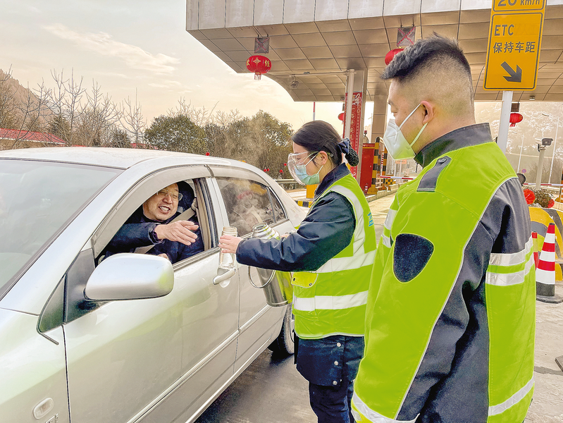 “師傅,我們給您盛杯熱水,天氣寒冷,出門注意保暖!”“謝謝你們,太細(xì)心了,新年快樂!”接到收費(fèi)員樊迪遞來的熱水,多名司機(jī)感動不已。除了送水送飯,收費(fèi)站還長期為司乘人員提供旅游地圖、醫(yī)藥箱、工具箱等便民物資。