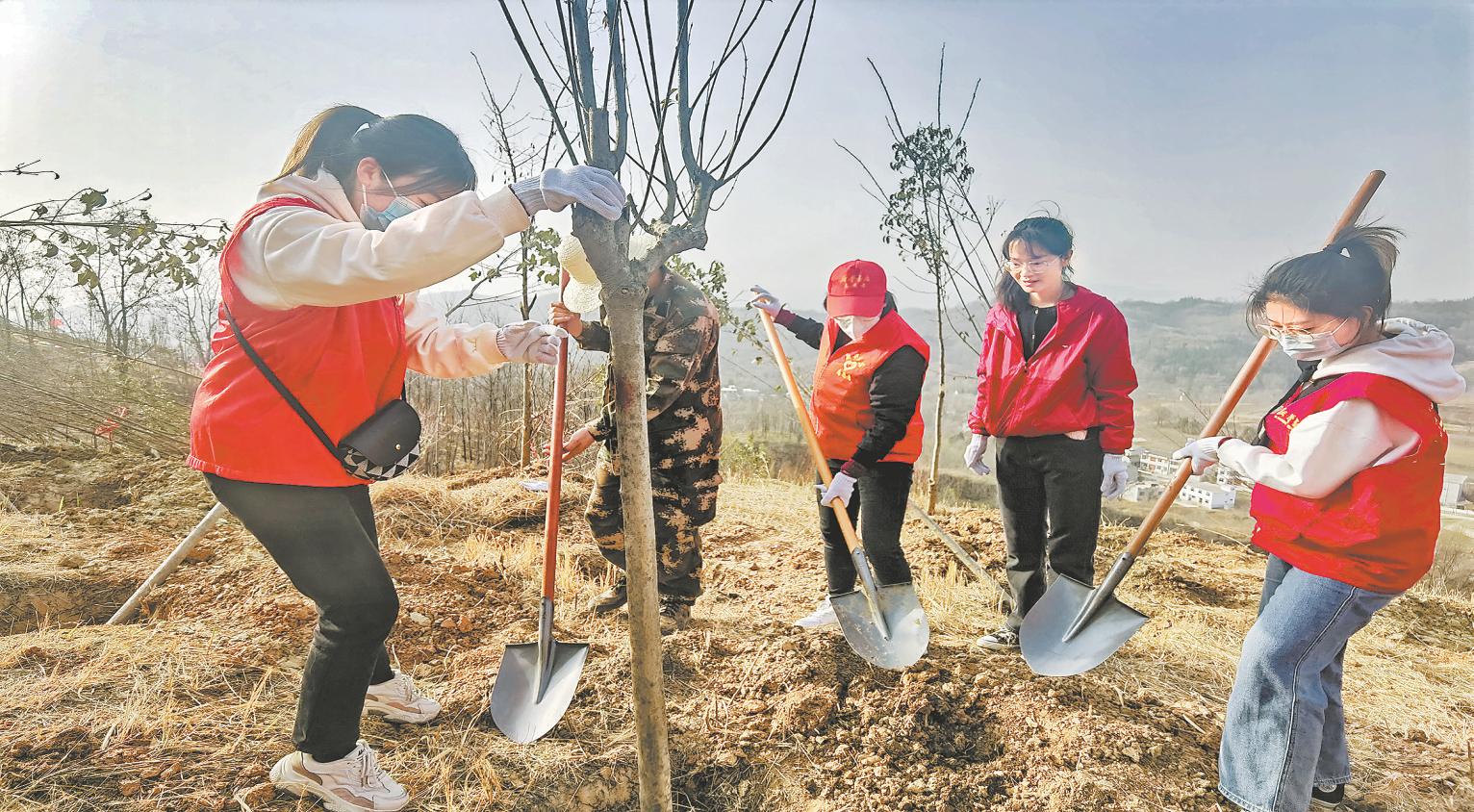 3月6日,山陽縣小河口鎮(zhèn)組織全鎮(zhèn)干部及巾幗志愿者開展“巾幗植樹展芳華 共為小河添新綠”植樹節(jié)主題活動,以實際行動為建設(shè)美麗秦嶺山水鄉(xiāng)村植綠添彩。 (本報通訊員 寧 坤 攝)