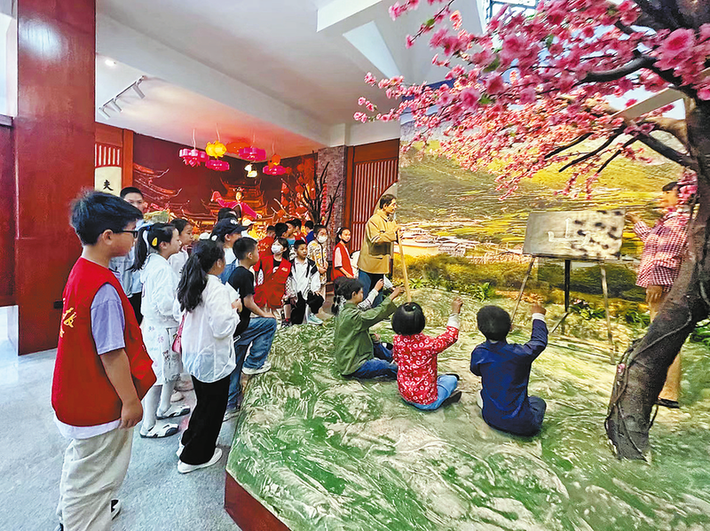 “這些人像的神態(tài)、著裝都是按照劇目還原的,作品取材于商洛的真實(shí)故事,榮獲了第三屆陜西省藝術(shù)節(jié)優(yōu)秀劇目獎(jiǎng)等多個(gè)獎(jiǎng)項(xiàng)。”市地方戲曲研究院周婉怡老師向小記者介紹了商洛花鼓《月亮光光》的由來及故事情節(jié)。跟隨周老師的步伐,小記者參觀了商洛花鼓樂器展示區(qū)、服飾展示區(qū)、代表劇目等多個(gè)區(qū)域,了解商洛花鼓歷史、音樂特點(diǎn)和各個(gè)劇目的演出、主創(chuàng)團(tuán)隊(duì)。有的小記者做起了筆記,有的認(rèn)真觀看展板并拍照留念。