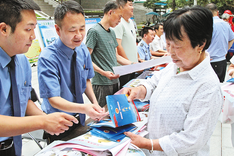 △7月15日至17日,山陽縣檢察院工作人員在縣人民政府廣場開展“秦嶺生態(tài)環(huán)境保護(hù)”集中宣傳活動,集中向群眾普及檢察機(jī)關(guān)公益訴訟職能及生態(tài)環(huán)境保護(hù)法律知識。