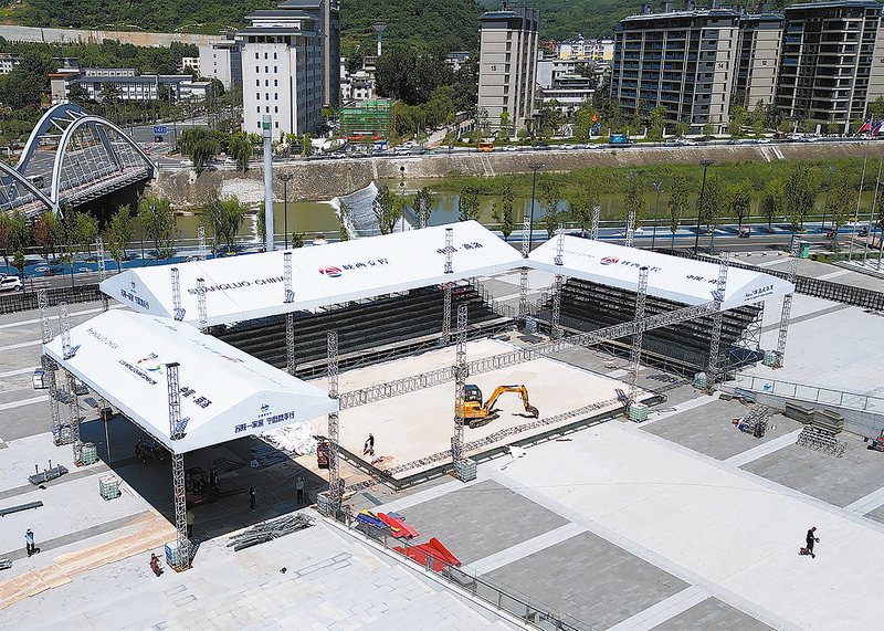 8月5日,距2024國際排聯(lián)沙灘排球U19世界錦標賽在商洛開賽還有22天,筆者走進位于秦嶺博物館西廣場的比賽主場地,了解場地建設情況。