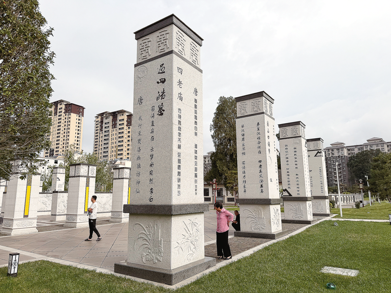 △市中心城區(qū)四皓公園內(nèi),古詩(shī)詞石刻隨處可見(jiàn)。市民或漫步賞景或駐足品讀詩(shī)文,在充滿文化氛圍的環(huán)境中享受休閑時(shí)光。