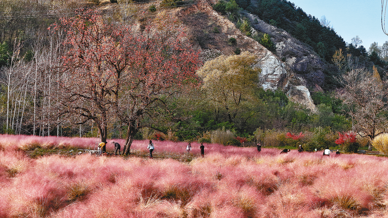 11月2日,置身于商州區(qū)江山風(fēng)景區(qū),美不僅在于引人注目的柿子樹(shù),粉黛亂子草也為秋天增添一抹絢爛。一片片粉色“云霧”仿佛是秋天的使者,散發(fā)著無(wú)盡的溫柔與浪漫。柿子樹(shù)不僅承載了游客對(duì)幸福生活的期許,還成為商洛秋天的一個(gè)象征,使人們?cè)谟^賞之余,心頭涌動(dòng)著那份對(duì)美好生活的向往。當(dāng)火紅的柿子、粉黛亂子草與山石、游人融為一體,一幅色彩斑斕的晚秋畫(huà)卷令人心曠神怡。(本報(bào)記者 楊 鑫 攝)