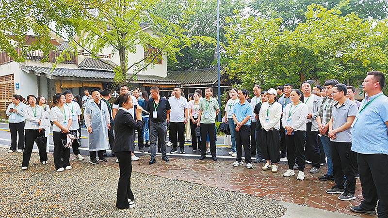 參與培訓(xùn)的學(xué)員在成都市明月村觀摩學(xué)習(xí)。