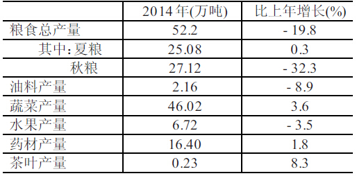 全年實(shí)現(xiàn)農(nóng)林牧漁業(yè)總產(chǎn)值165.92億元,增長4.7%。實(shí)現(xiàn)增加值90.82億元,增長4.7%。全年糧食總產(chǎn)量為52.2萬噸,下降19.8%。其中夏糧產(chǎn)量25.08萬噸,秋糧產(chǎn)量27.12萬噸。