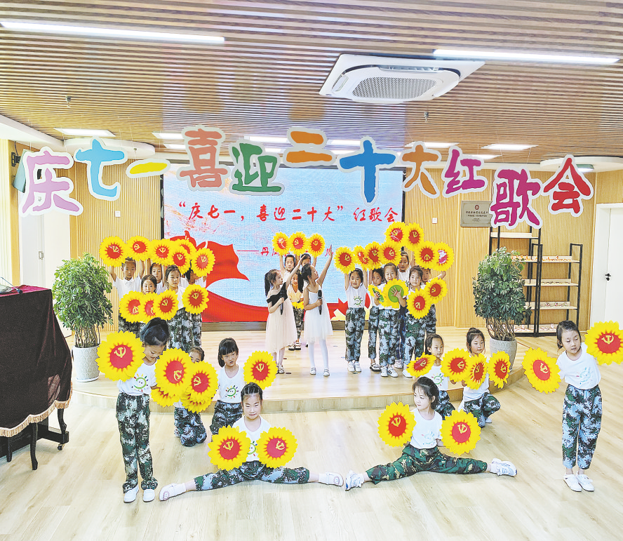 6月28日,丹鳳縣第一幼兒園開展了“慶七一、喜迎二十大”紅歌會(huì)活動(dòng),為黨的生日獻(xiàn)禮。孩子們把《黨在我心中》《童心向黨》《名字叫中國(guó)》等用朗誦和演唱的形式展現(xiàn),將對(duì)祖國(guó)的熱愛、對(duì)幸福生活的感恩之情融入表演中。 (本報(bào)通訊員 劉 娜 攝)