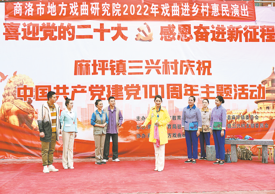 6月29日,市教育局聯(lián)合洛南縣麻坪鎮(zhèn),在三興村舉辦“喜迎黨的二十大·感恩奮進(jìn)新征程”主題活動(dòng),表彰了三興村11名模范黨員,為三興村農(nóng)家書屋和小學(xué)捐贈(zèng)了價(jià)值1.5萬元的圖書,還邀請(qǐng)市戲曲研究院為群眾表演了歌伴舞、秦腔、花鼓小戲等文藝節(jié)目,贏得了大家的陣陣掌聲。 (本報(bào)記者 王 倩 攝)