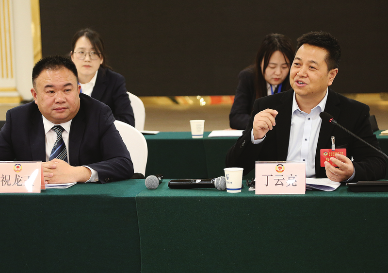 2月3日,工會、共青團(tuán)、婦聯(lián)、特邀界列席人員丁云亮圍繞學(xué)生、教師減負(fù)與委員們展開討論。(本報(bào)記者 王孝竹 攝)