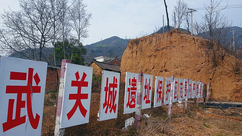 田老師告訴記者,歷史上的武關(guān)城重修于1510年,關(guān)城東西280米,南北320米。城墻高8米,厚3.4米,是用夯土版筑,灰磚包墻的。1860年,清商州知府曹熙主持了對(duì)武關(guān)的再次修復(fù),還手書(shū)“武關(guān)”二字。如今,站在武關(guān)城遠(yuǎn)眺東南,只見(jiàn)懸崖深壑,石環(huán)水繞,我們依然能領(lǐng)略到它的險(xiǎn)阻天成。然而無(wú)論曾是秦朝的要塞,抑或是漢時(shí)的關(guān)隘,武關(guān)已經(jīng)是芳草萋萋,荒蕪了許多春秋,也唯有這里的古城墻在向人們?cè)V說(shuō)著千年前的往事。