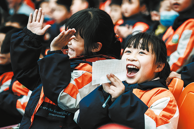 ?精彩的比賽引得看臺上的小學(xué)生熱烈鼓掌歡呼。