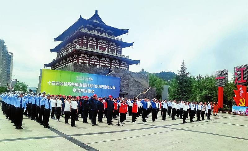 本報訊(記者 陳靜)5月26日,十四運會和殘?zhí)貖W會倒計時100天誓師大會在市區(qū)丹鶴樓廣場舉行。市委副書記、市長、十四運會商洛市競委會主任鄭光照出席并領(lǐng)誓,副市長、十四運會商洛市競委會執(zhí)行主任權(quán)雅寧、矯增兵出席活動。