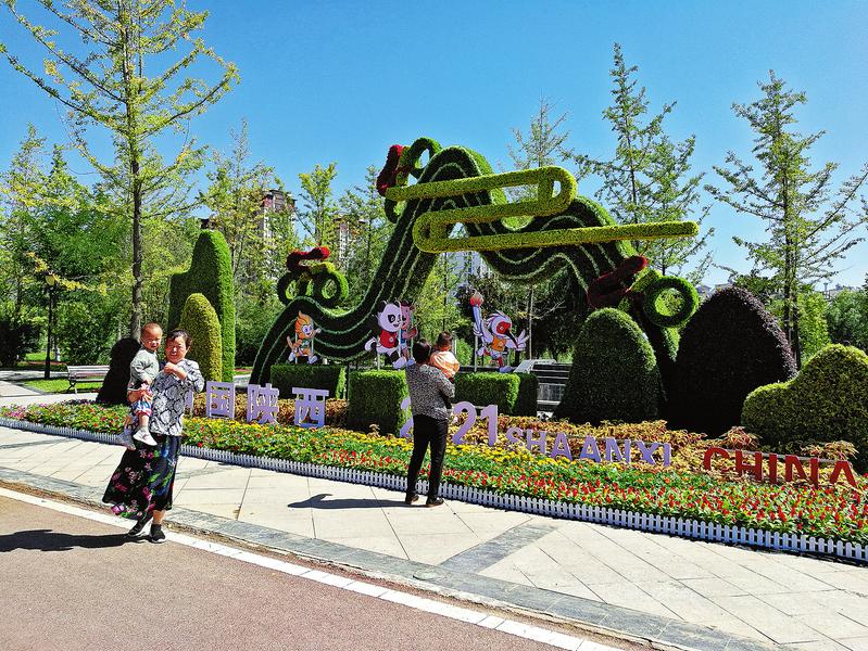 銀杏公園里新建的綠色景觀凸現(xiàn)十四運會元素