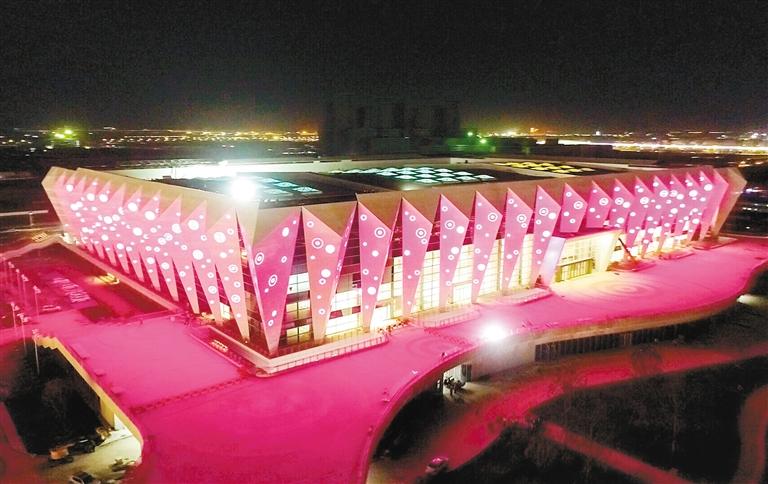 遠眺西安奧體中心游泳跳水館,場館的梁柱與幕墻完美融合,展現(xiàn)出建筑的力量之美。記者了解到,這座游泳跳水館建筑面積超過10萬平方米,共有4000個座椅,場館高度約30米。特別是在燈光的配合下,夜晚的“長安鼎”更顯靈動飄逸。